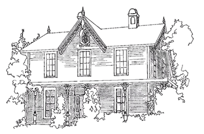 Wentworth Villa was built at 1156 Fort (Fernwood) around 1862 in Carpenter Gothic. It is typical of how the Gothic style was applied to a modest residence with its steep side-gabled roof, centred wall-gable in the front façade, and intricately carved bargeboards. The wraparound porch with its support brackets simulating a flattened arch, and the token ornately detailed pointed window set prominently in the peak of the wall-gable, are examples of how an otherwise simple house could be transformed into a recognizable style.