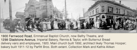 Fernwood has long been noted for its trees on both city boulevards and private property. Neighbourhood corner stores were a common convenience in the old days, before many were wiped out by the grocery store chains.