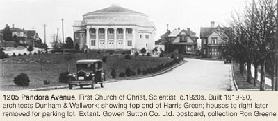– Conservatory of Music buys former Metropolitan United Church, (1411 Quadra St / 907 Pandora Av, Harris Green), designed 1890 by Thomas Hooper.